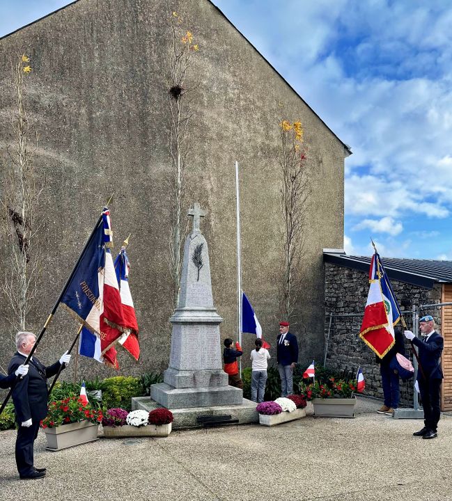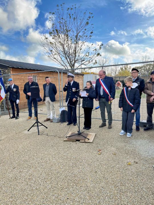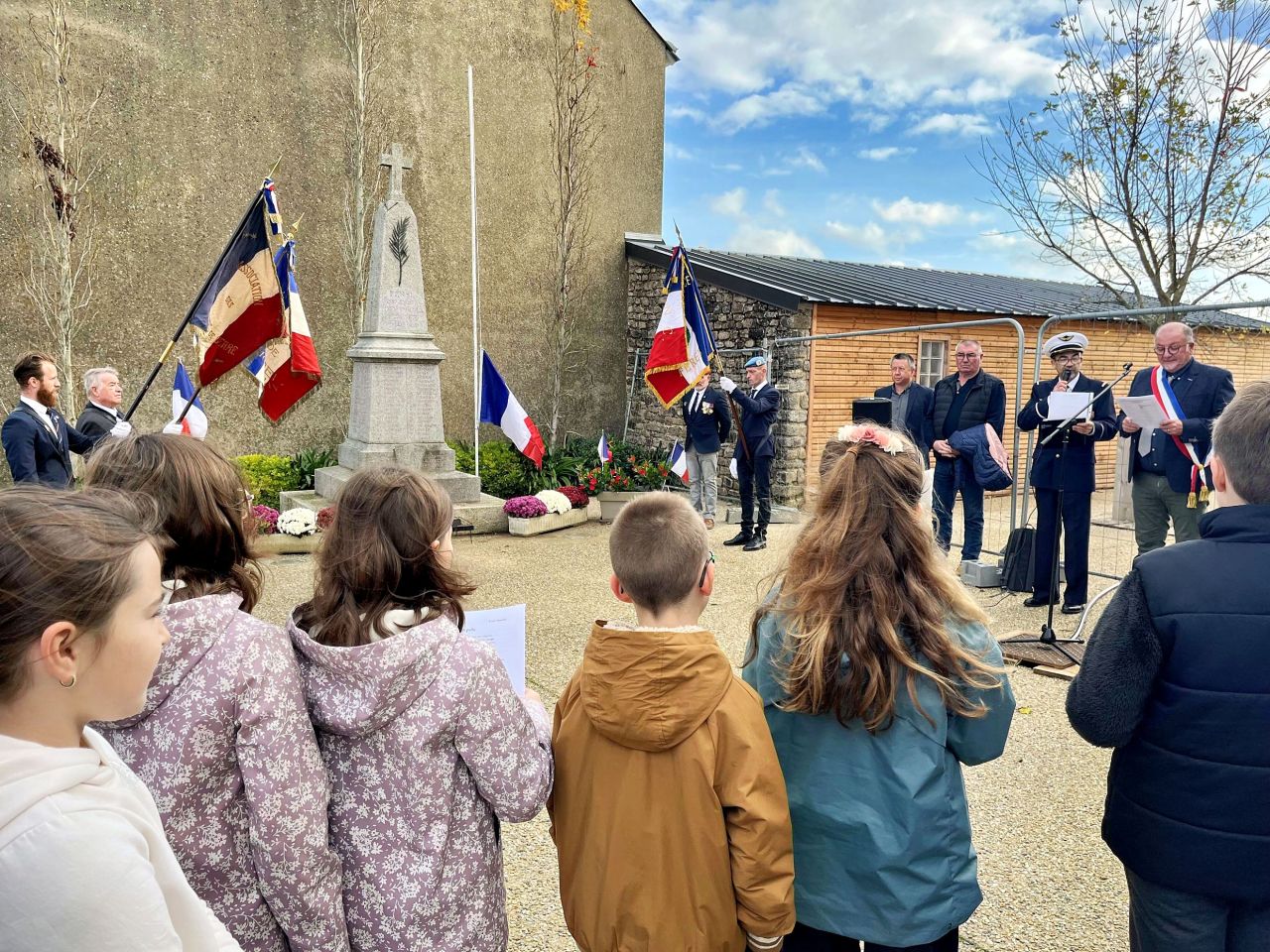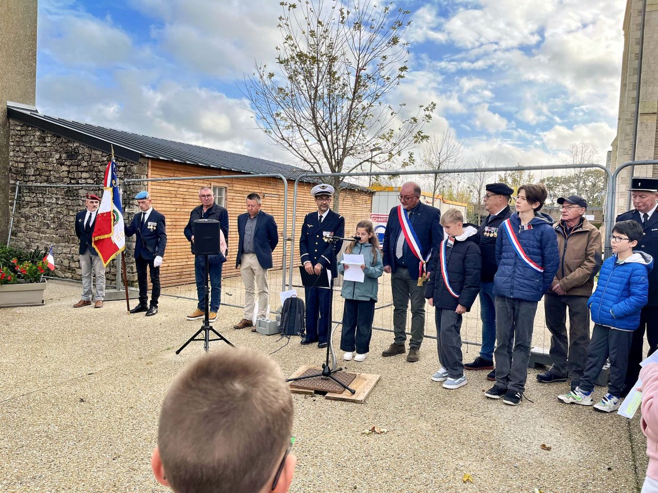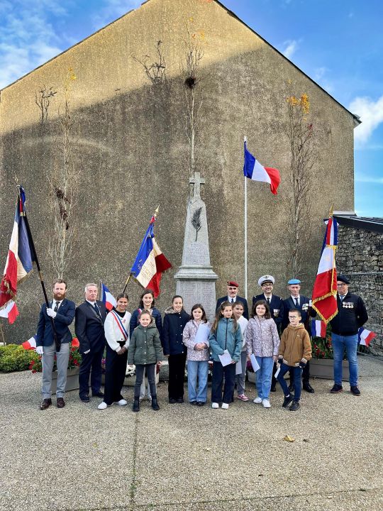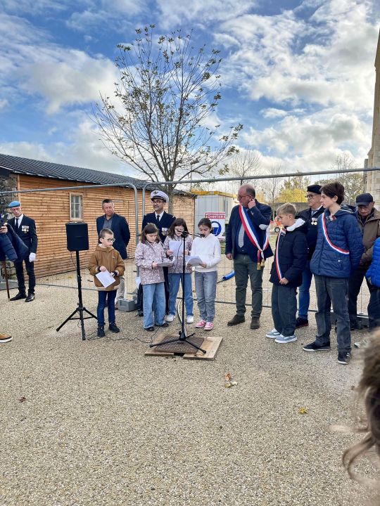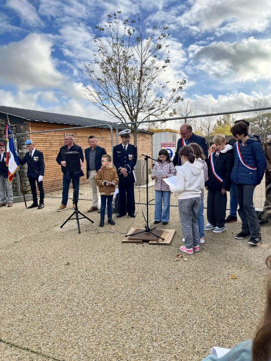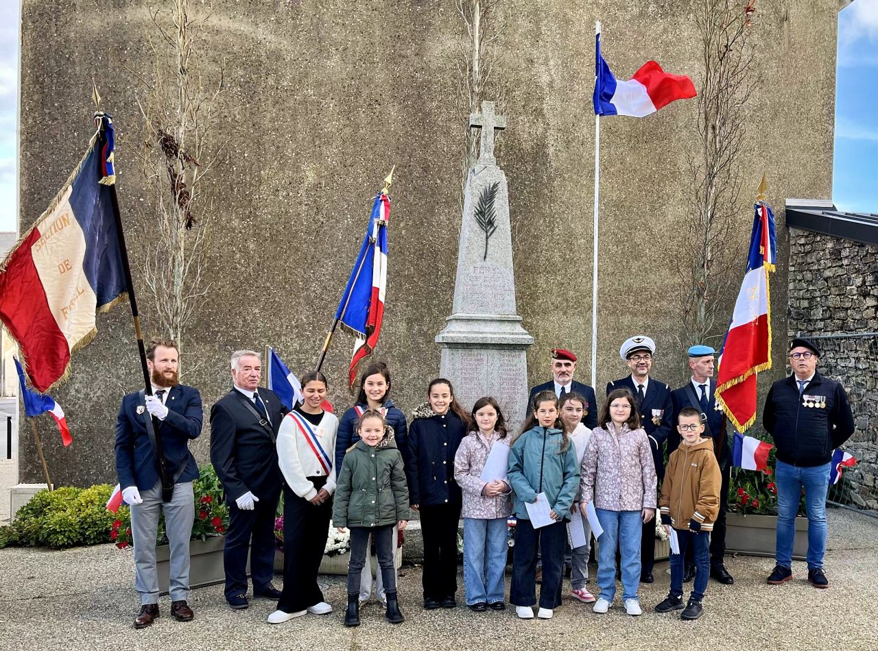 Les élèves de CE2-CM1 et CM2 ont été invités à participer à la cérémonie de commémoration du 8 mai 1945. Pour célébrer les 80 ans de l'armistice, le thème de la paix a été retenu. Les élèves ont lu un texte "Soldat écoutez donc". Ils ont chanté La Marseillaise et le Chant des Partisans.