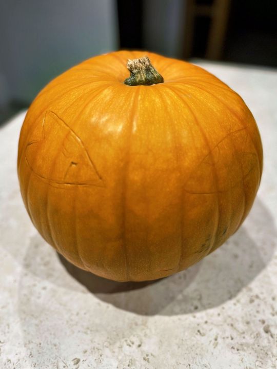 Laura nous a apporté une belle citrouille à décorer pour fêter Halloween.